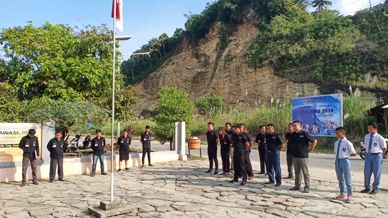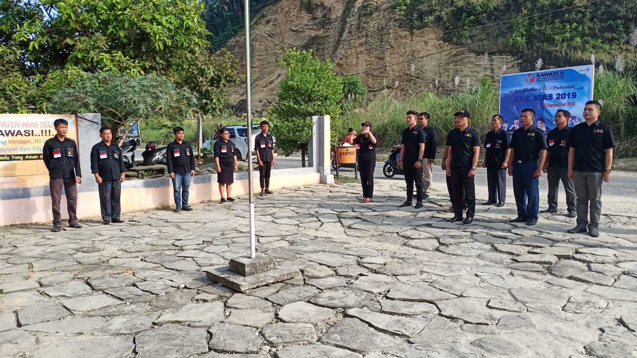 Nisel, Bawaslu - Bawaslu Kabupaten Nias Selatan melaksanakan upacara pengibaran bendera untuk memperingati Hari Olahraga Nasional (HAORNAS) yang ke - 36 di halaman kantor Bawaslu Kab. Nisel.