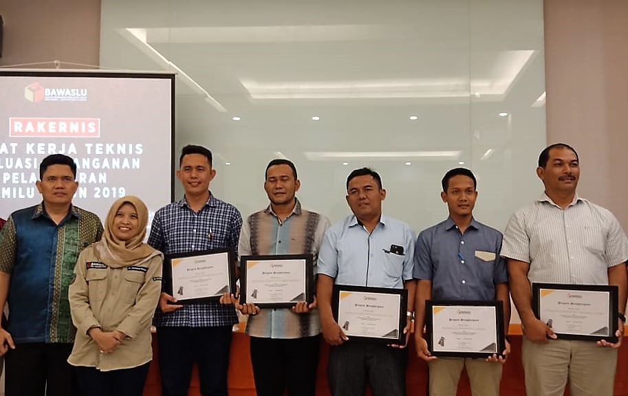 Penghargaan tersebut diberikan langsung oleh Ketua Bawaslu Sumatera Utara Ibu Syafrida R. Rasahan pada kegiatan rapat kerja teknis (Rakernis) Evaluasi Penanganan Pelanggaran Pemilu Tahun 2019 di Padang Sidempuan 01-03 November 2019.