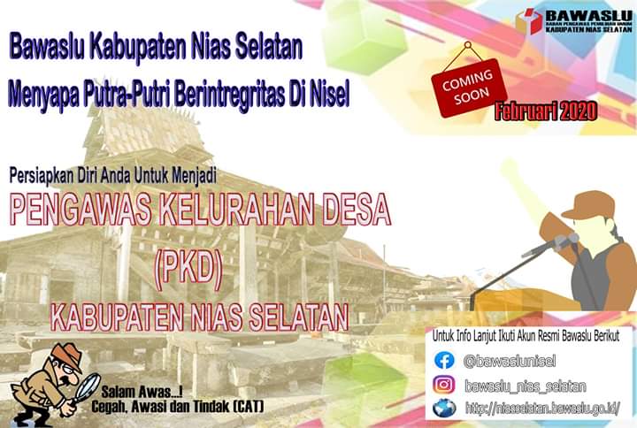 Bawaslu Kabupaten Nias Selatan akan membuka pendaftaran Pengawas Kelurahan Desa (PKD) Pilkada 2020 di Kabupaten Nias Selatan.