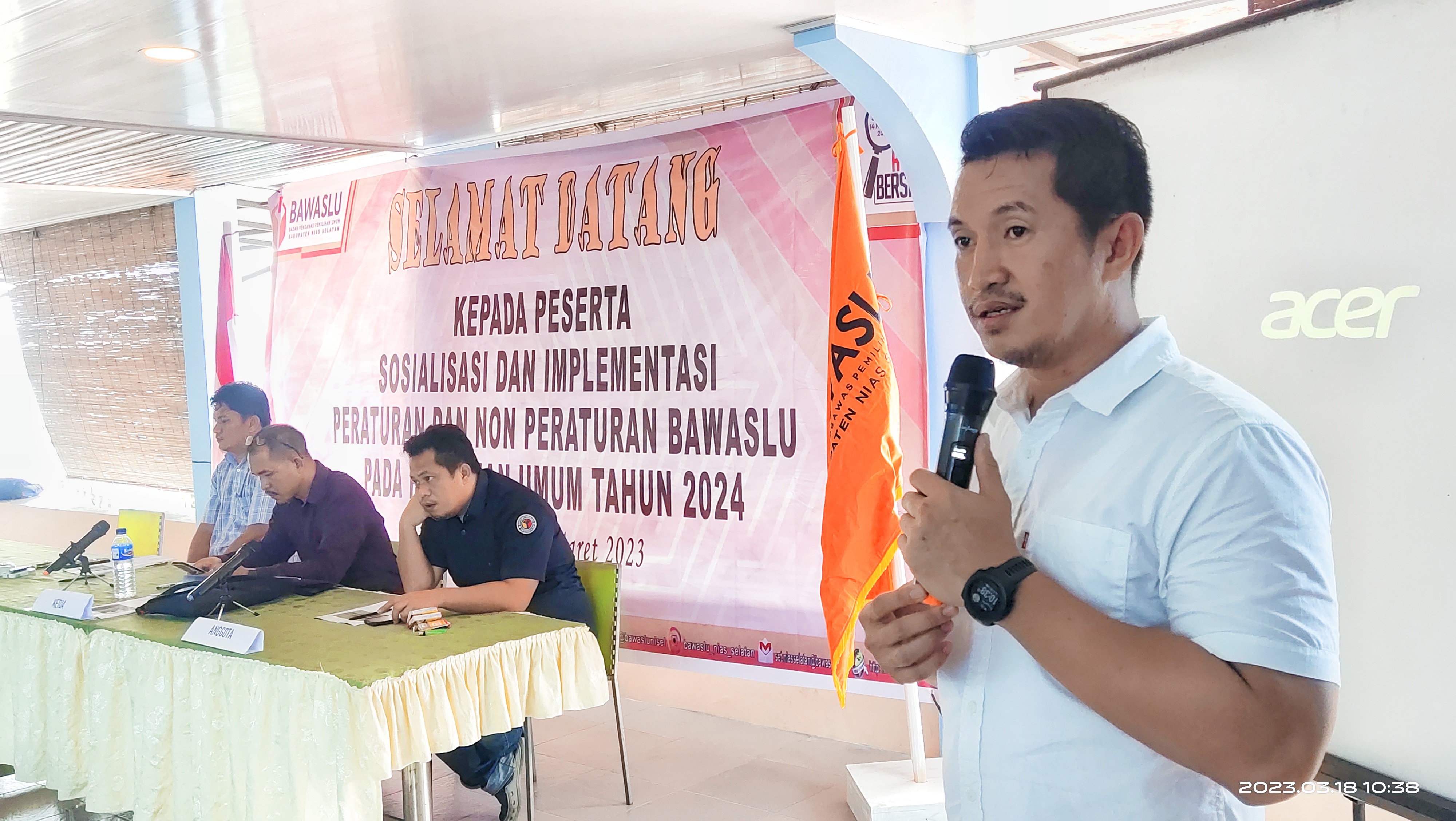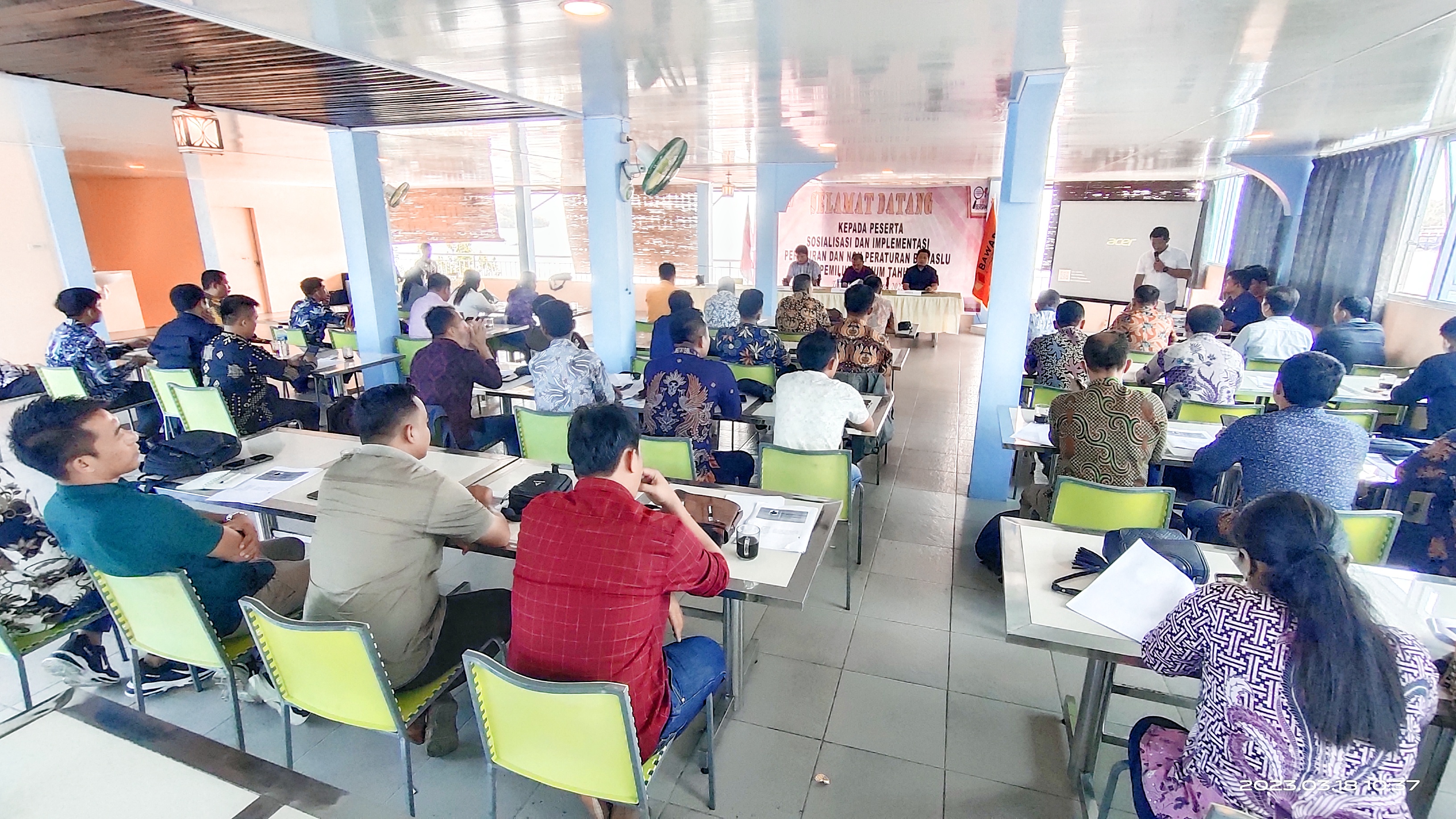 Foto: Kegiatan sosialisasi dan Implementasi Peraturan dan Non Peraturan Bawaslu yang dilaksankan di Aula Sem Hotel Telukdalam.