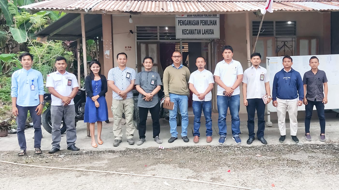 Foto Bersama. Anggota Bawaslu Nisel Kordiv HP2H dan Kordiv P3S didampingi Kasubbag Pengawasan dan Staf serta Panwaslu Kecamatan Lahusa.