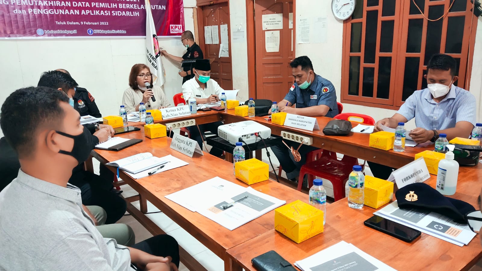 Telukdalam_Bawaslu Nisel - Bawaslu Kabupaten Nias Selatan (Nisel) mengharapkan aplikasi SIDARLIH (Sistem Pemutakhiran Data Pemilih Berkelanjutan) dapat menghasilkan data pemilih yang akuntabel, akurat dan komperhensif. Hal itu disampaikan Bawaslu Nias Selatan saat menghadiri Sosialisasi Peraturan KPU No 6 tahun 2021 tentang pemutakhiran data pemilih berkelanjutan dan penggunaan aplikasi Sidarlih yang dilaksanakan oleh KPU Nias Selatan di Kantor KPU Nias Selatan, Telukdalam (09/02/20222).