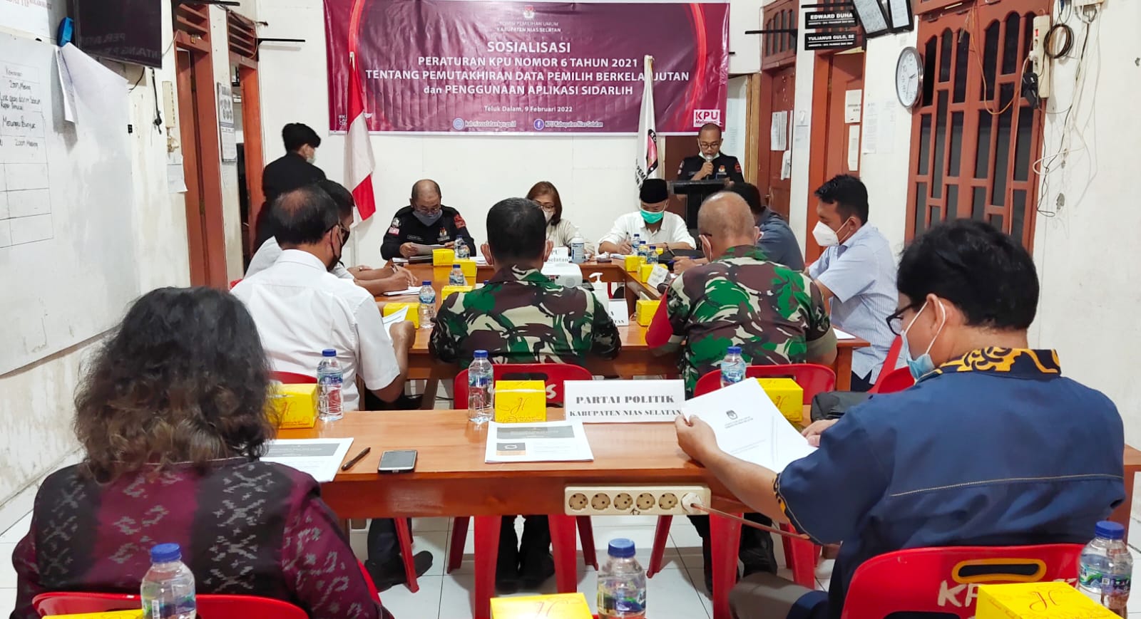 Foto: peserta Sosialisasi Peraturan KPU No 6 tahun 2021 tentang pemutakhiran data pemilih berkelanjutan dan penggunaan aplikasi Sidarlih yang dilaksanakan oleh KPU Nias Selatan di Kantor KPU Nias Selatan, Telukdalam (09/02/20222)
