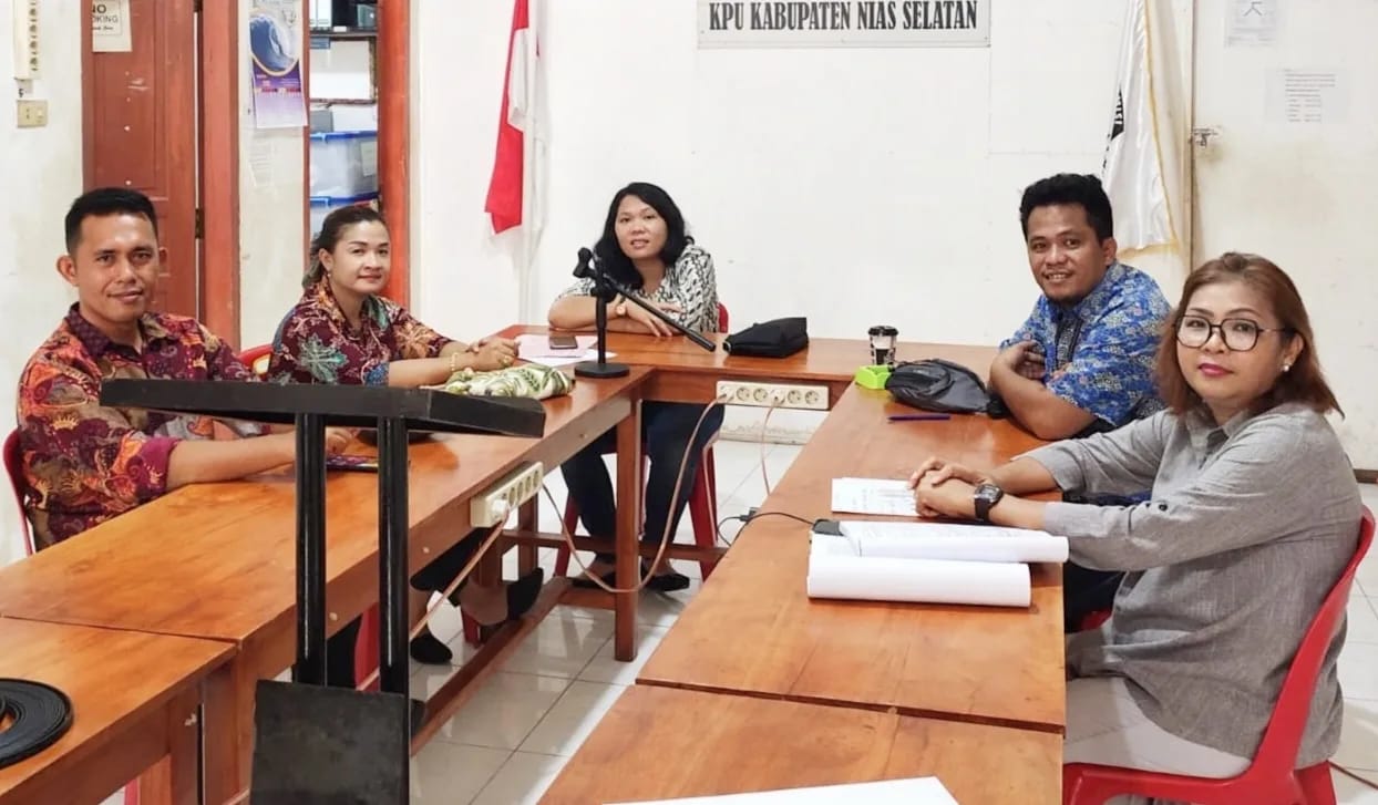 Foto: Ketua dan Anggota serta Plt. Kepala Sekretariat Bawaslu Nias Selatan bersama Anggota KPU Nias Selatan.