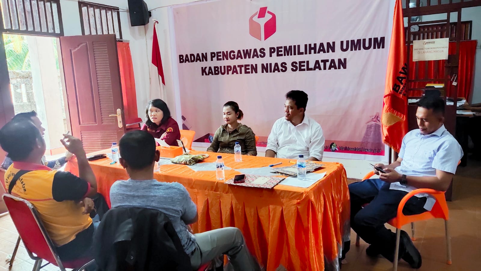 Rombongan LAKI diterima Ketua, Anggota dan Plt Kasek Bawaslu Nias Selatan.