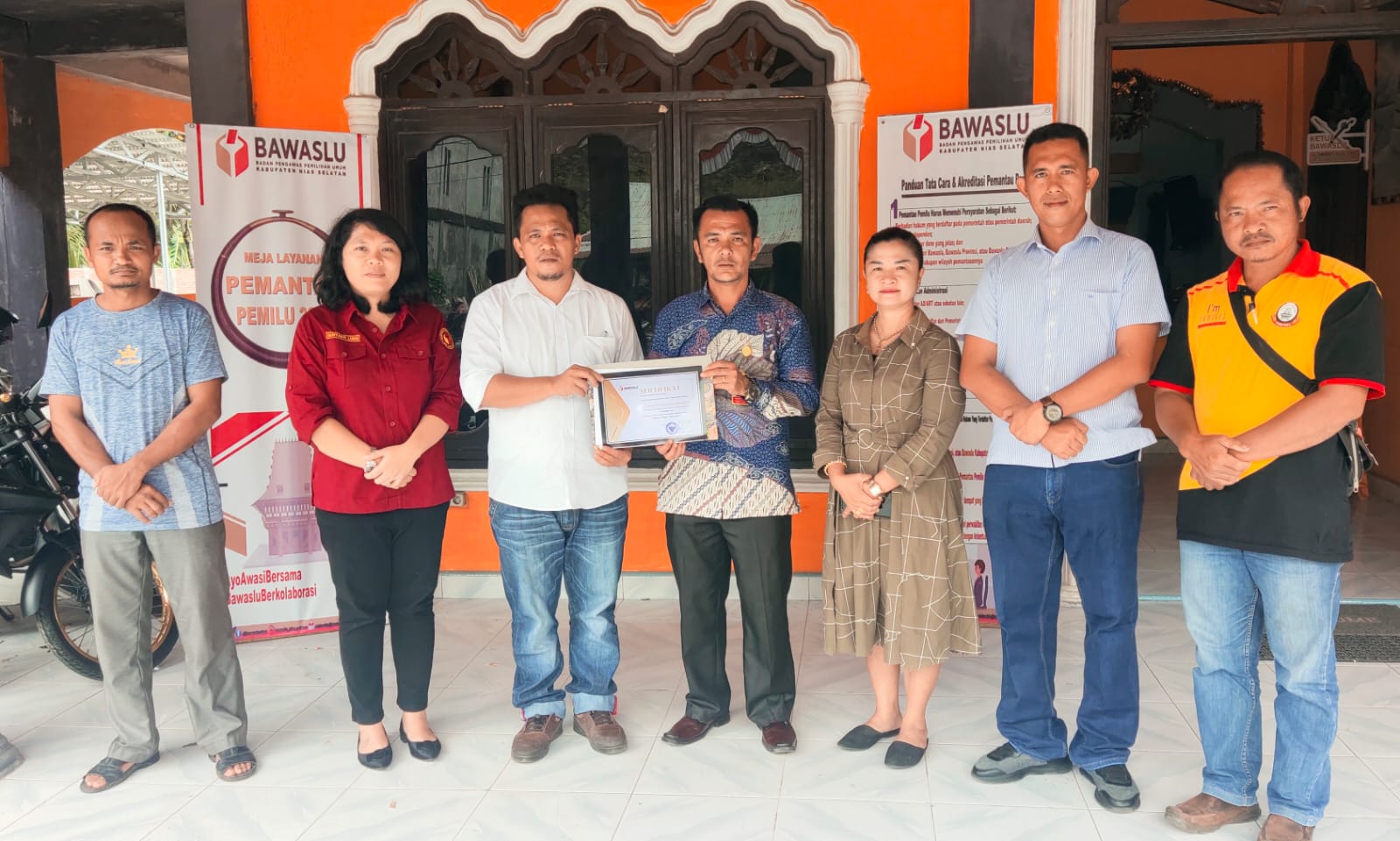 Foto: Ketua dan Anggota serta Plt. Kepala Sekretariat Bawaslu Nias Selatan bersama Rombongan Laskar Anti Korupsi Indonesia (LAKI)