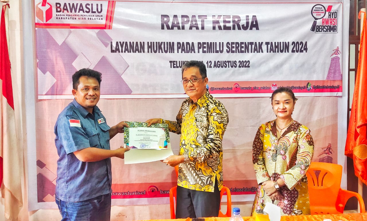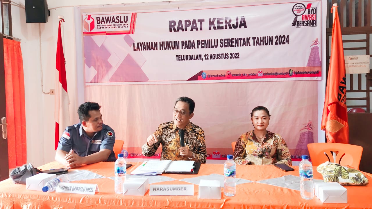Ketua Bawaslu Nias Selatan, Harapan Bawaulu menyampaikan bahwa rapat kerja pelayanan hukum yang dilaksanakan sebagai media peningkatan kapasitas dalam pelayanan hukum.