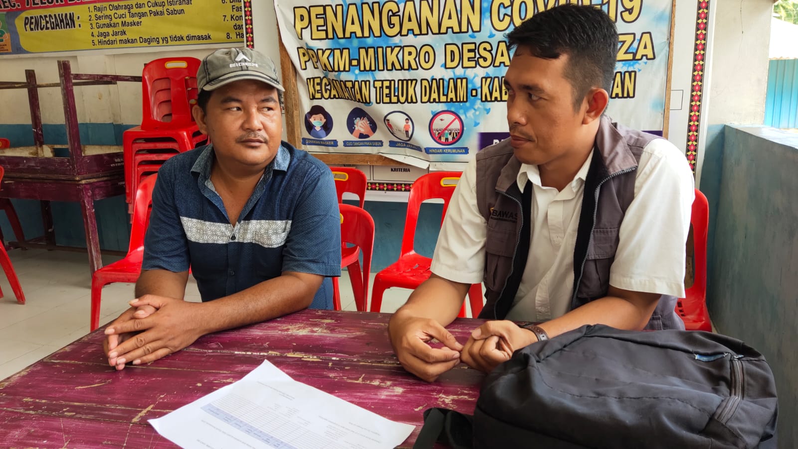 Foto: Anggota Bawaslu Nias Selatan Pilipus F. Sarumaha bersama Kepala Desa Hililaza Perhatian Bohalima pada kegiatan uji petik data pemilih di Desa Hililaza Kecamatan Telukdalam - senin,18/04/2022