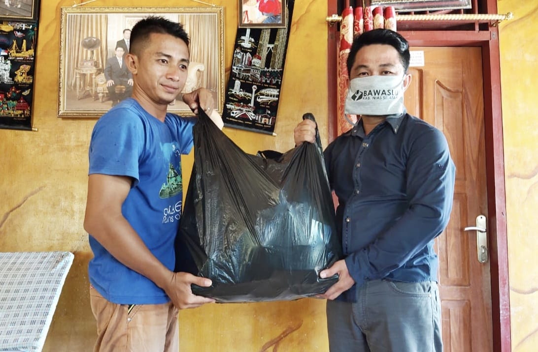 Foto: Penyerahan APD Oleh Staf Bawaslu Nias Selatan Kepada Anggota Panwaslu Kecamatan Pulau-Pulau Batu Utara