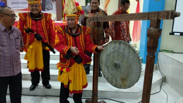Pembukaan Rakor ditandai dengan pemukulan gong oleh Ketua Bawaslu RI Abhan SH MH, Sabtu (6/7/2019).