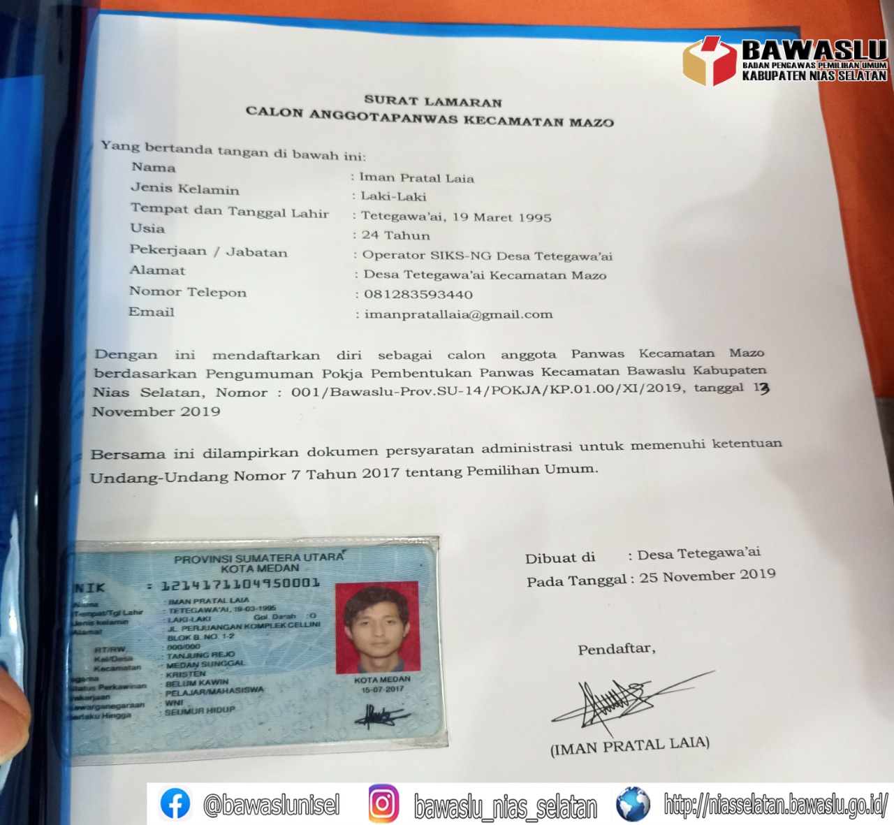 Pada pengumuman yang dikeluarkan oleh Bawaslu tentang perekrutan diberitahukan juga diterangkan bahwa usia minimal ketika melamar adalah 25 tahun, sehingga dengan rasa rendah hati, staf yang bertugas menyatakan bahwa Iman Pratal Laia dari Kecamatan mazo yang masih berusia 24 tahun tidak layak untuk mengikuti seleksi Panwas Kecamatan pada pilkada 2020.
