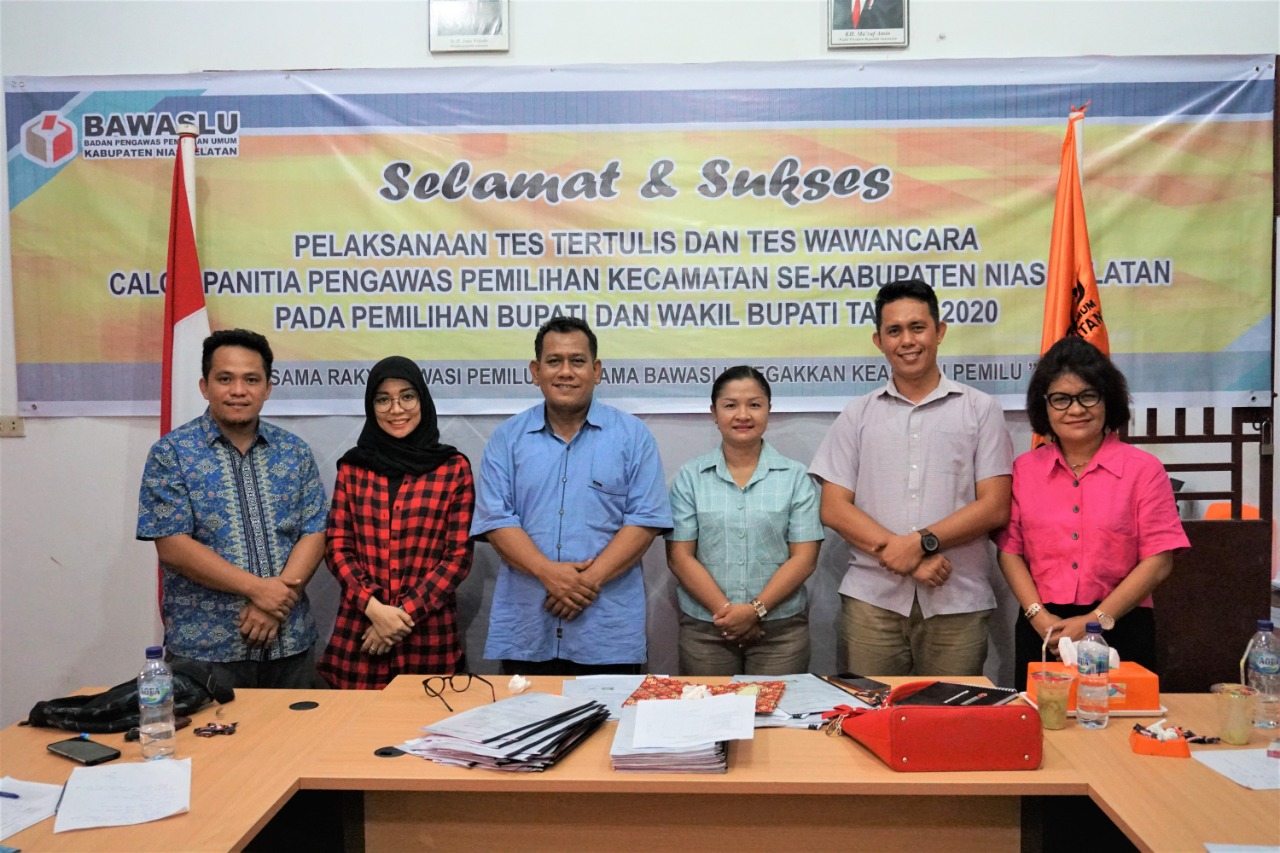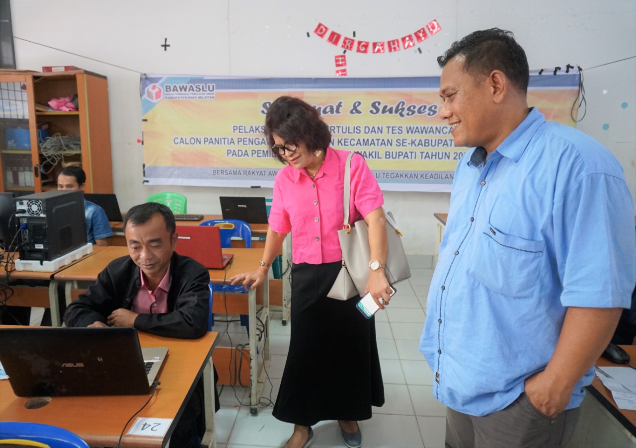 Didampingi oleh Sekretaris Pokja, Ibu Murniati Dakhi, SKM., MM., M.Mkes, Bapak Johan Alamsyah memonitoring pelaksanaan ujian CAT di dua sekolah dan tes wawancara yang dipimpin oleh Ketua Bawaslu Nias Selatan, Ibu Alismawati Hulu bersama Bapak Pilipus F. Sarumaha dan Harapan Bawaulu di Kantor Bawaslu Nias Selatan (15/12/19).