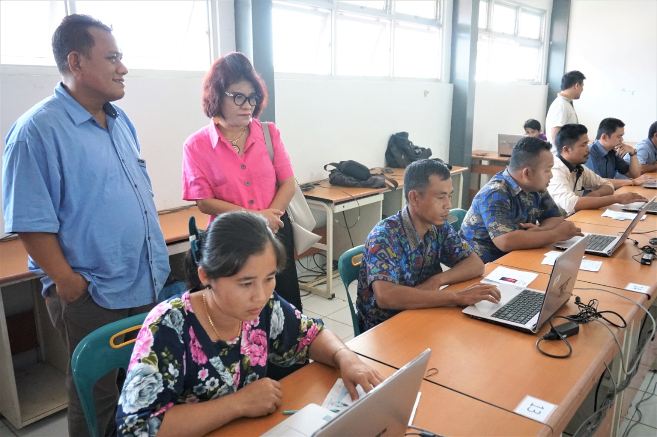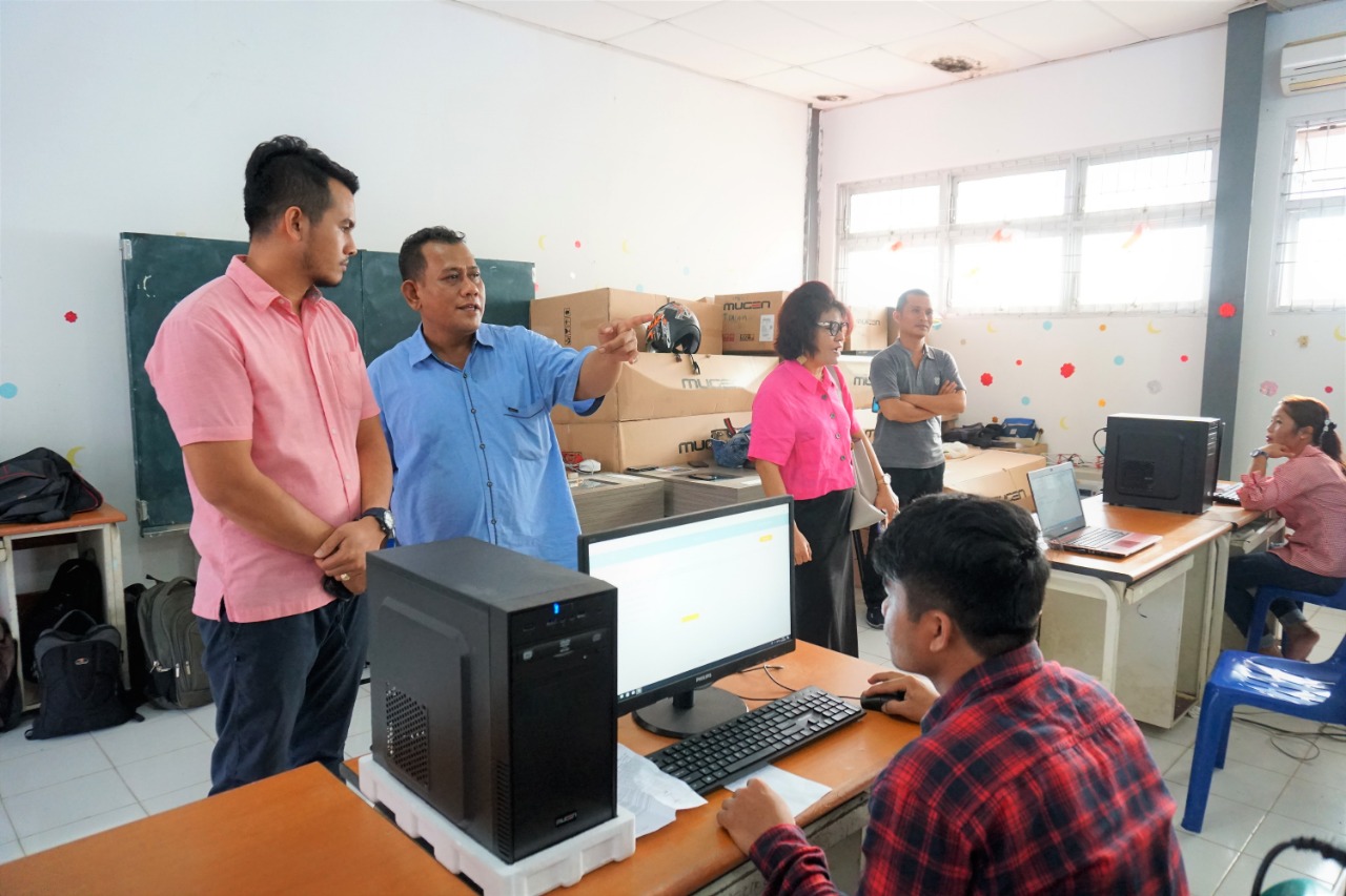 Bapak Johan Alamsyah, SH., MH bersama Ibu Murniati Dakhi, SKM., MM., M.Mkes monitoring pelaksanaan ujian CAT.