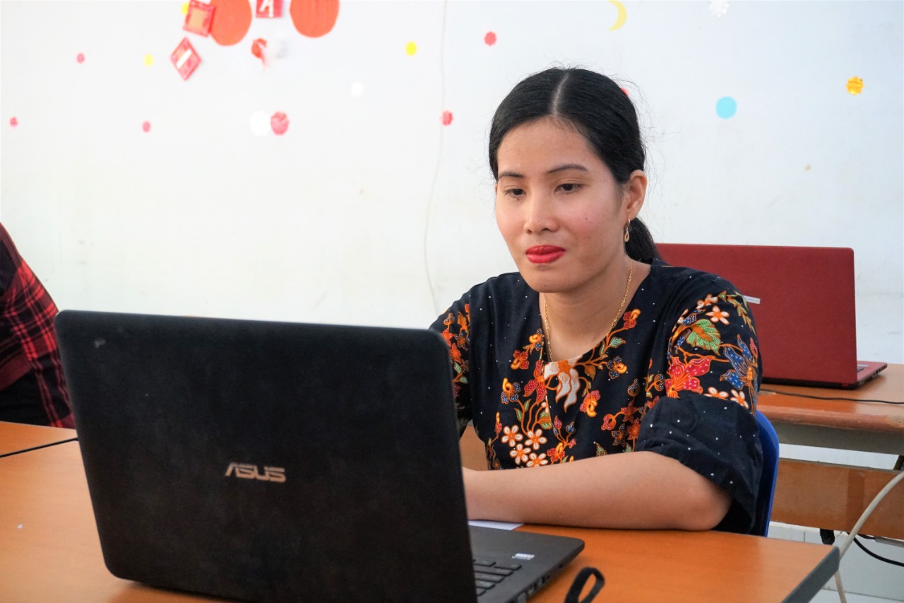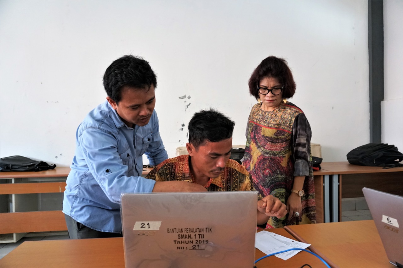 Ibu Murniati Dakhi, monitoring persiapan panitia dalam mengecek identitas Peserta Ujian CAT.