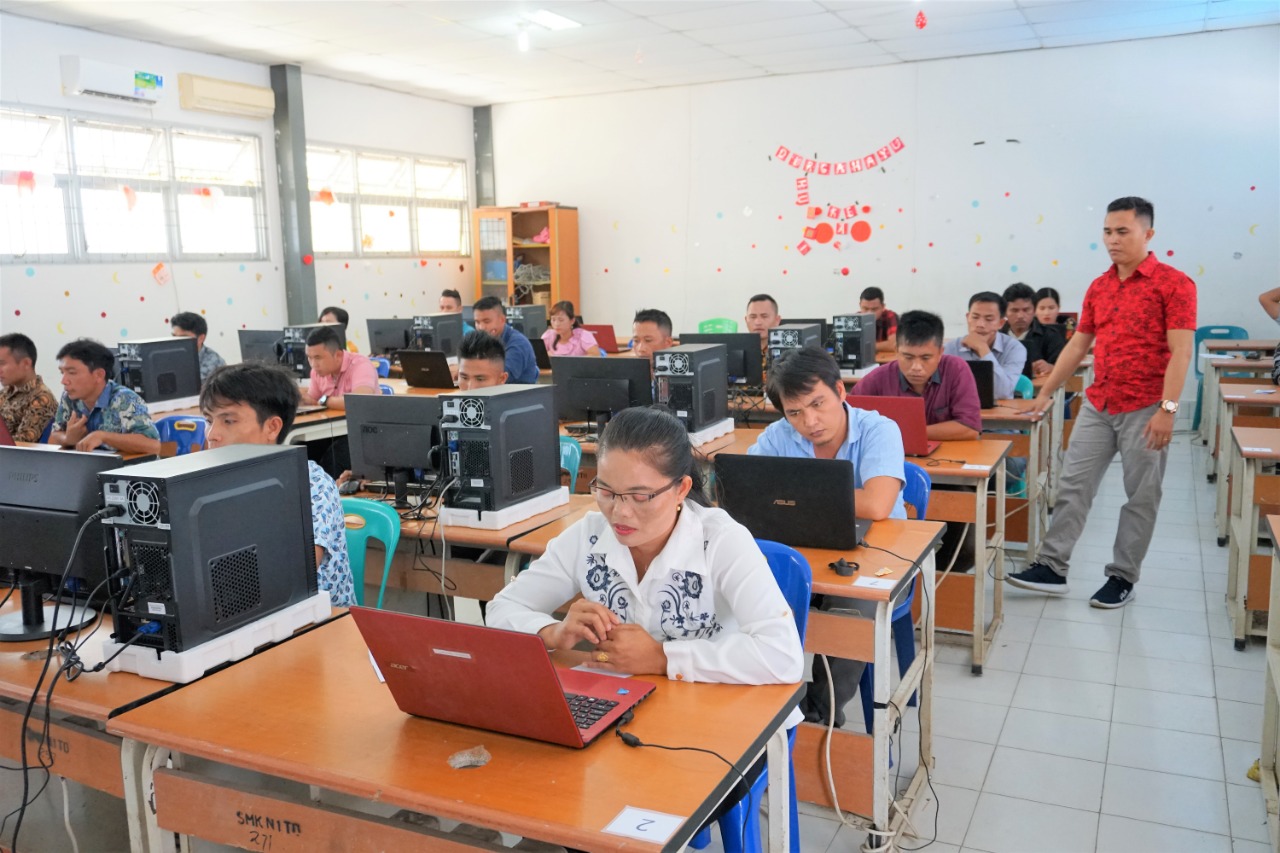 Panitia mengawasai berlangsungnya ujian CAT