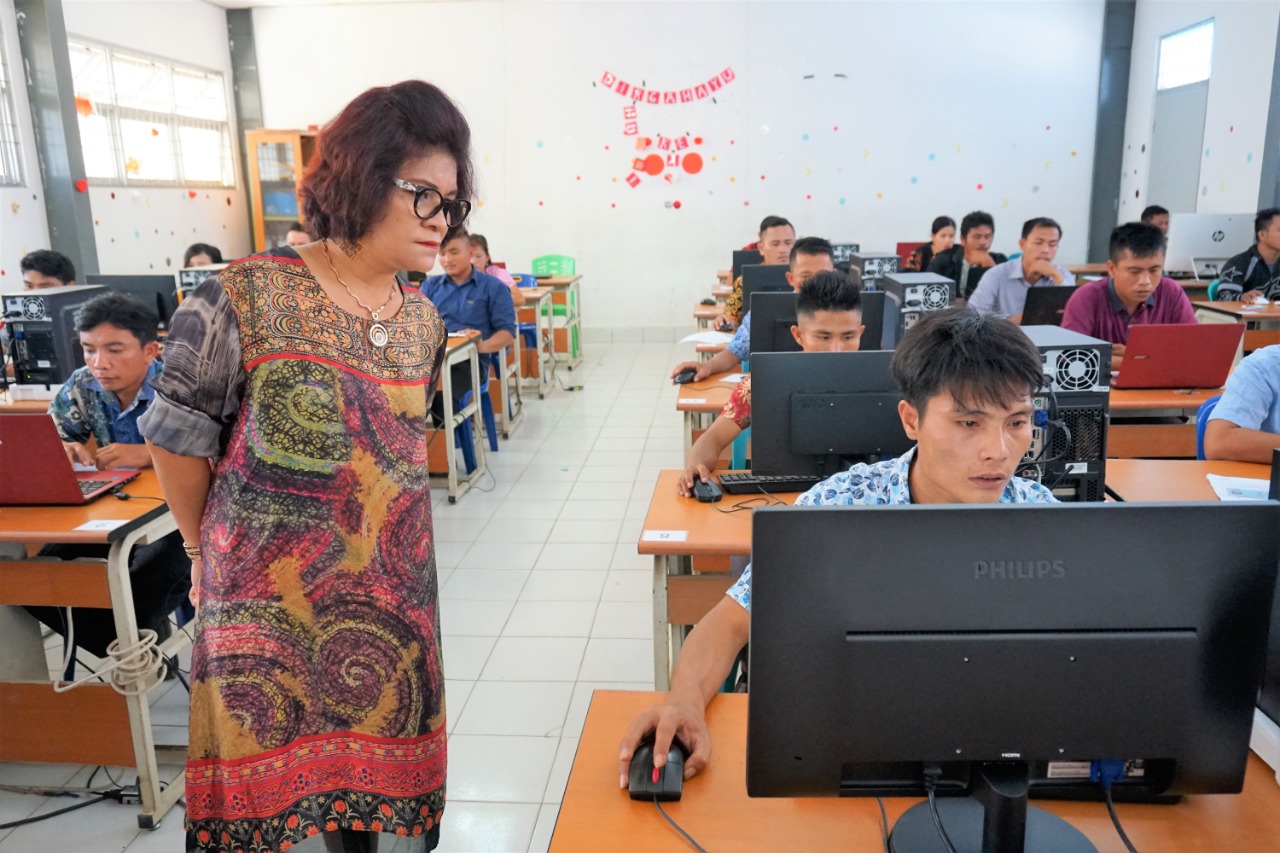 Ibu Murniati Dakhi, monitoring persiapan Peserta ujian.