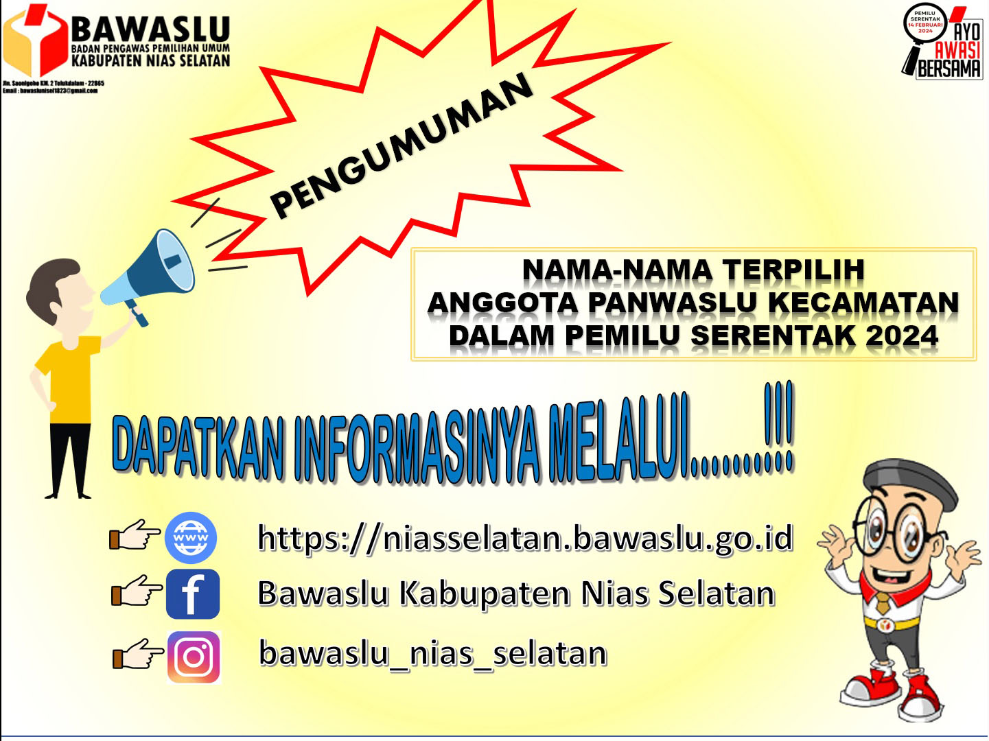 Pengumuman Nama-nama Terpilih Anggota Panwaslu Kecamatan Kabupaten Nias Selatan