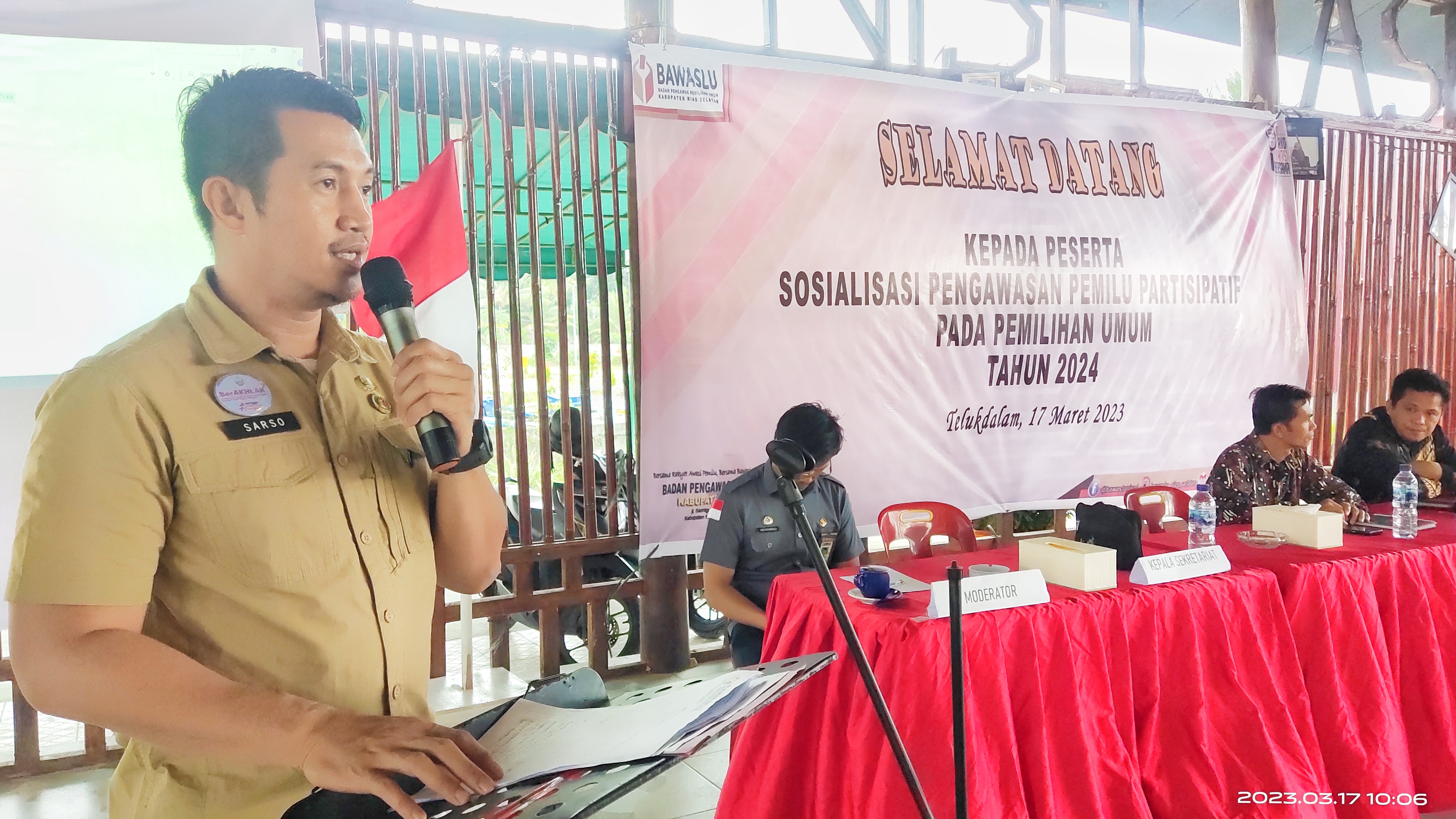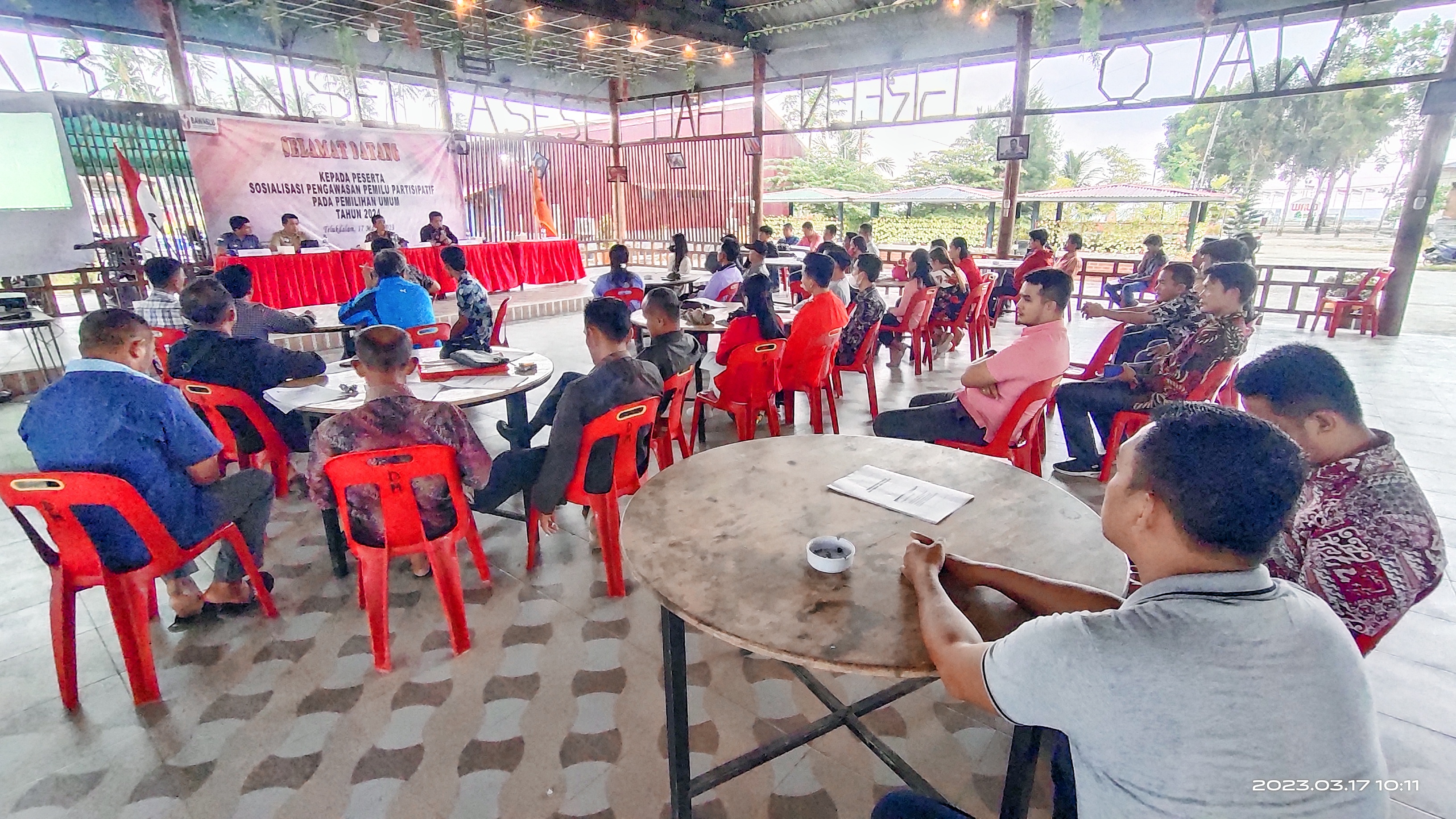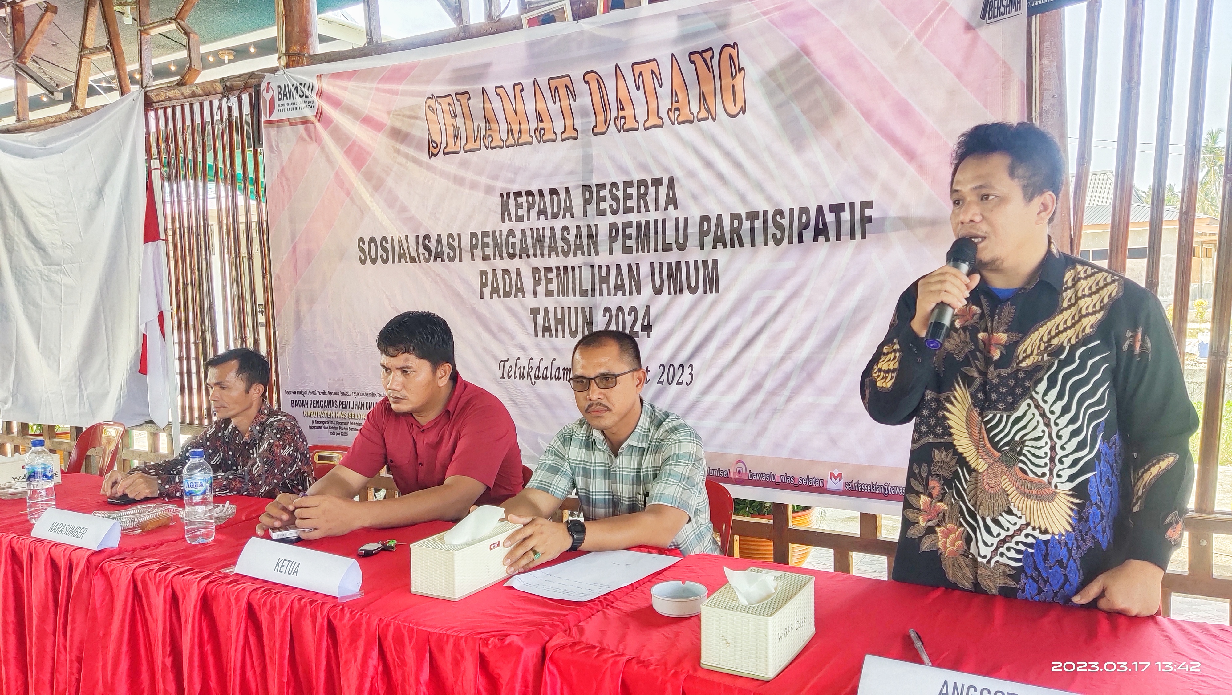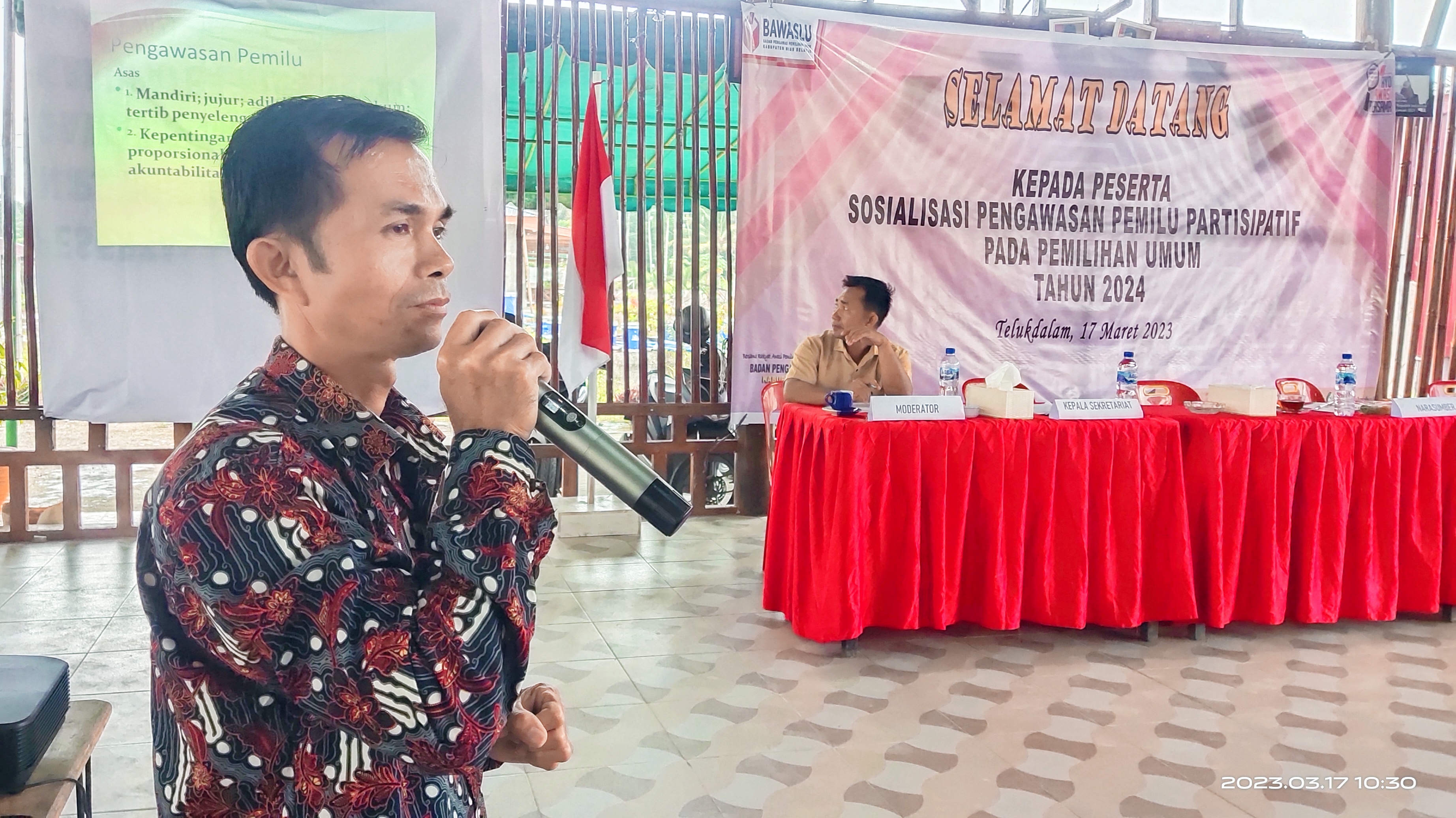 Foto; Sosialisasi Pengawas Partisipatif Pemilu 2024 yang dilaksanakan di Aula Walo Green Telukdalam.