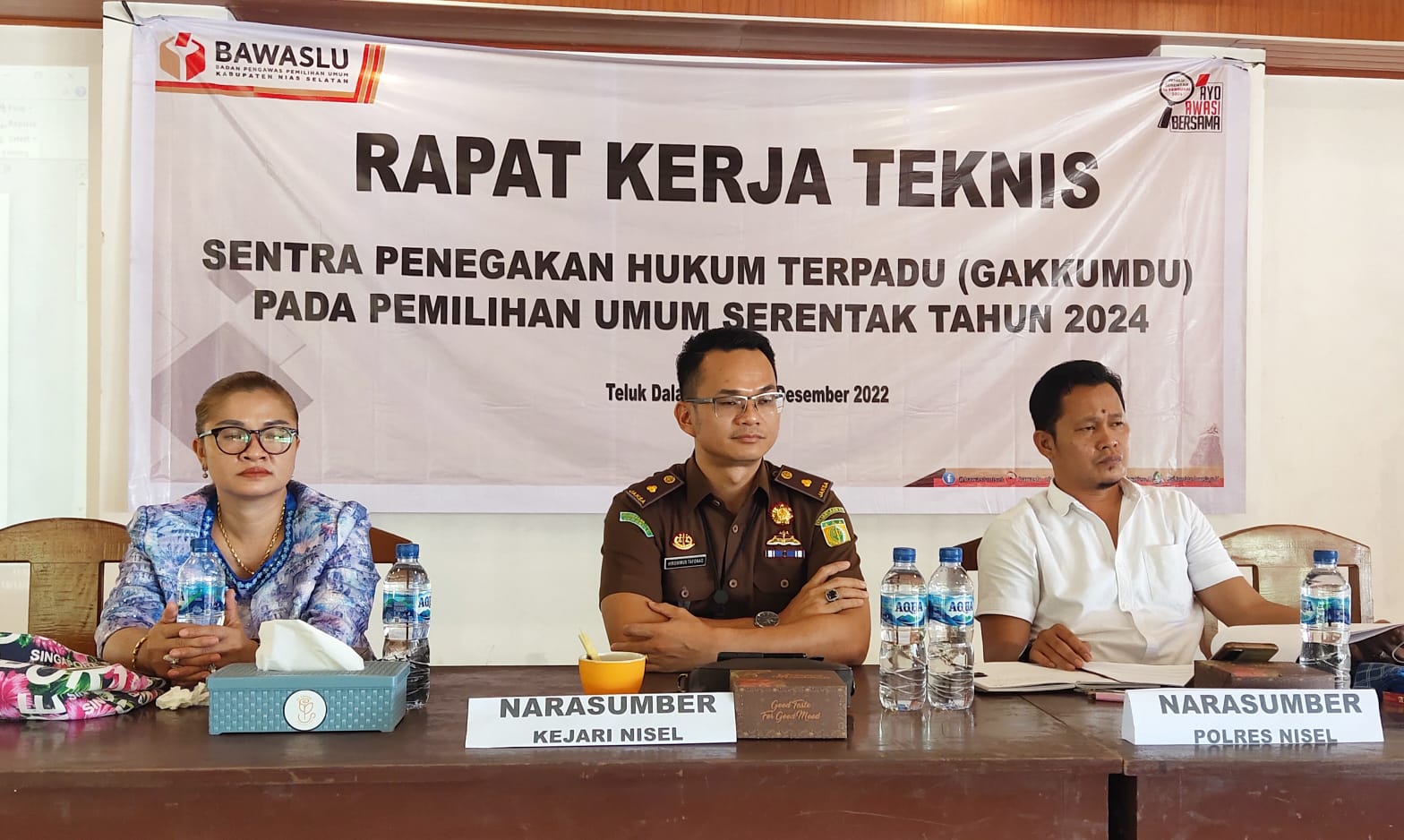 Anggota Bawaslu Nisel Kordiv Penanganan Pelanggaran dan Penyelesaian Sengketa (P3S) Alismawati Hulu saat membuka kegiatan tersebut sempat menjelaskan bahwa Sentra Gakkumdu terdiri dari 3 lembaga yang saling berkoordinasi untuk menegakkan tindak pidana pemilu.
