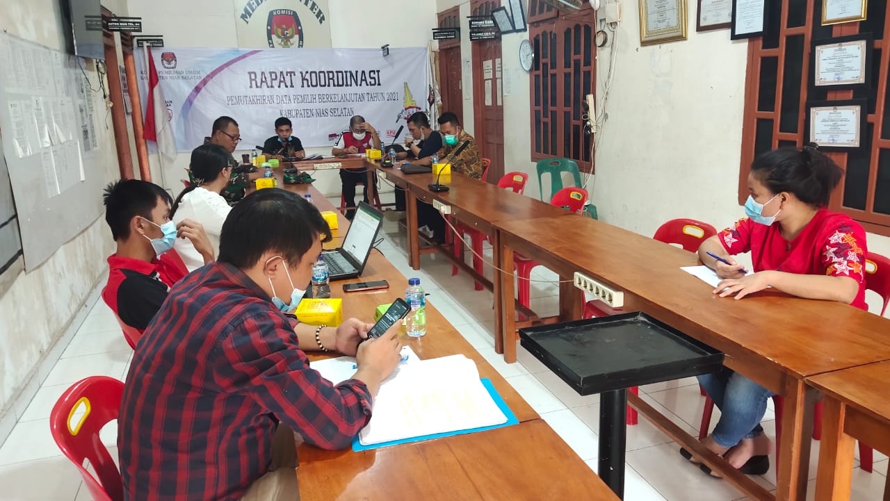 Foto: Rapat koordinasi Pemutakhiran Daftar Pemilih Berkelanjutan Tahun 2021 yang dilaksanakan di Kantor KPU Kabupaten Nias Selatan