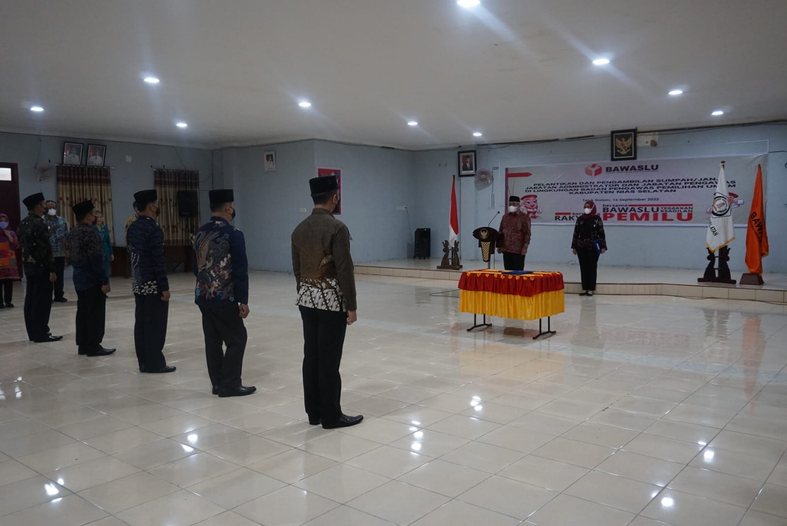 Turut hadir dalam pelantikan tersebut Ketua Bawaslu Sumut Syafrida R. Rasahan, Anggota Bawaslu Sumut Kordinator Pengawasan Suhadi S. Situmorang, Kepala Sekretariat Bawaslu Sumut Feri Mulia Siagian, Ketua Bawaslu Nias Selatan Harapan Bawaulu, Wakil Bupati Nisel Firman Giawa, Sekda Nisel Iktiar Duha, Dandim 0213/Nias, Lanal Nias, Polres Nisel, Tokoh agama dan stakeholder.