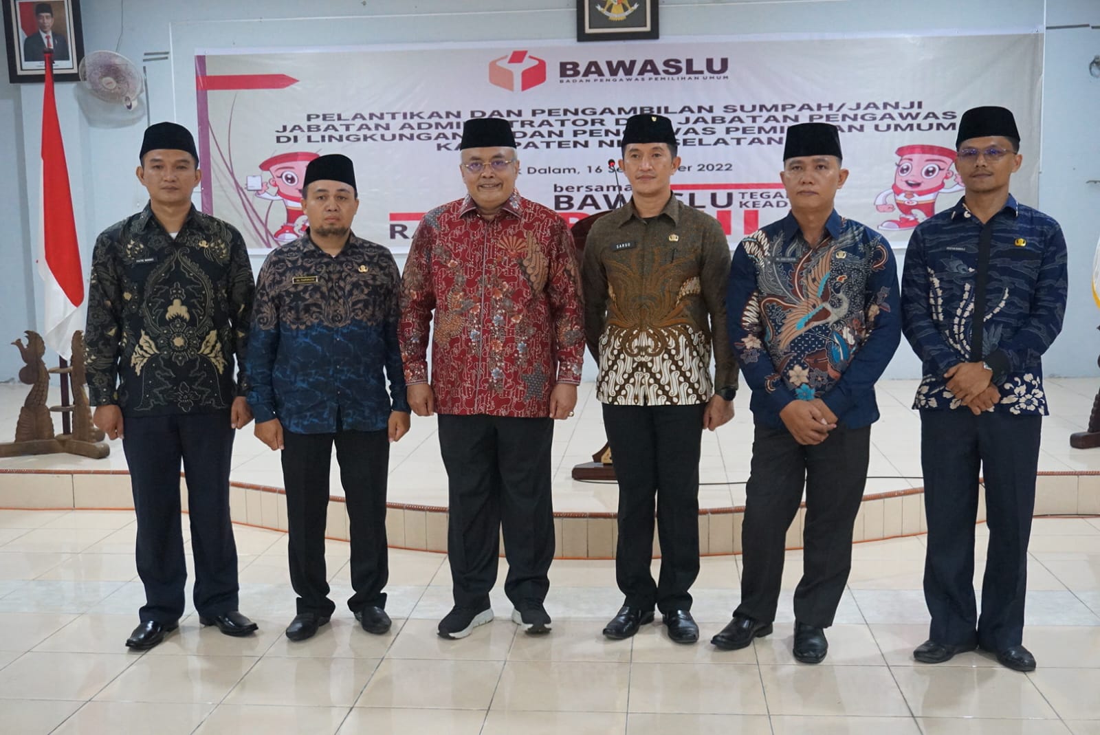 Foto: Sekretaris Jenderal Bawaslu Republik Indonesia Dr.Gunawan Suswantoro bersama Pejabat yang telah dilantik Sarso F. Sarumaha sebagai Kepala Sekretariat Bawaslu Nisel, Aljuli Duha sebagai Kasubbag Administrasi, Kristian Bawaulu sebagai Kasubbag Pengawasan Pemilu, Patrianus Manao sebagai Kasubbag Hukum, Humas, Data dan Informasi, serta Aluizisokhi Tafonao, sebagai Kasubbag Penanganan Pelanggaran dan Penyelesaian Sengketa Proses Pemilu.