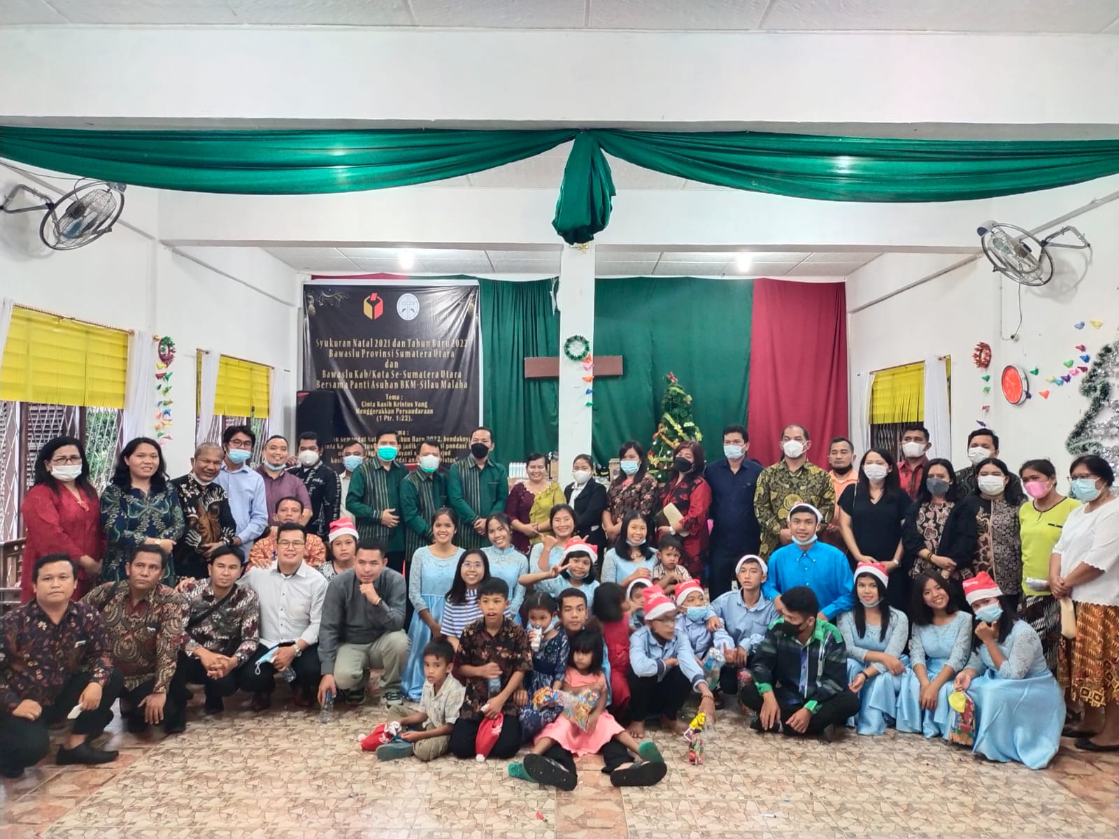 Simalungun_Bawaslu Sumut- Sebagai wujud rasa syukur di tahun 2022, Bawaslu Provinsi Sumatera Utara dan Bawaslu Kabupaten/Kota se-Provinsi Sumatera Utara melaksanakan kegiatan Syukuran Natal 2021 dan Tahun Baru 2022 di Panti Asuhan Bumi Keselamatan Margarita (BKM) Silau Mahala, Simalungun (10/1/2022).