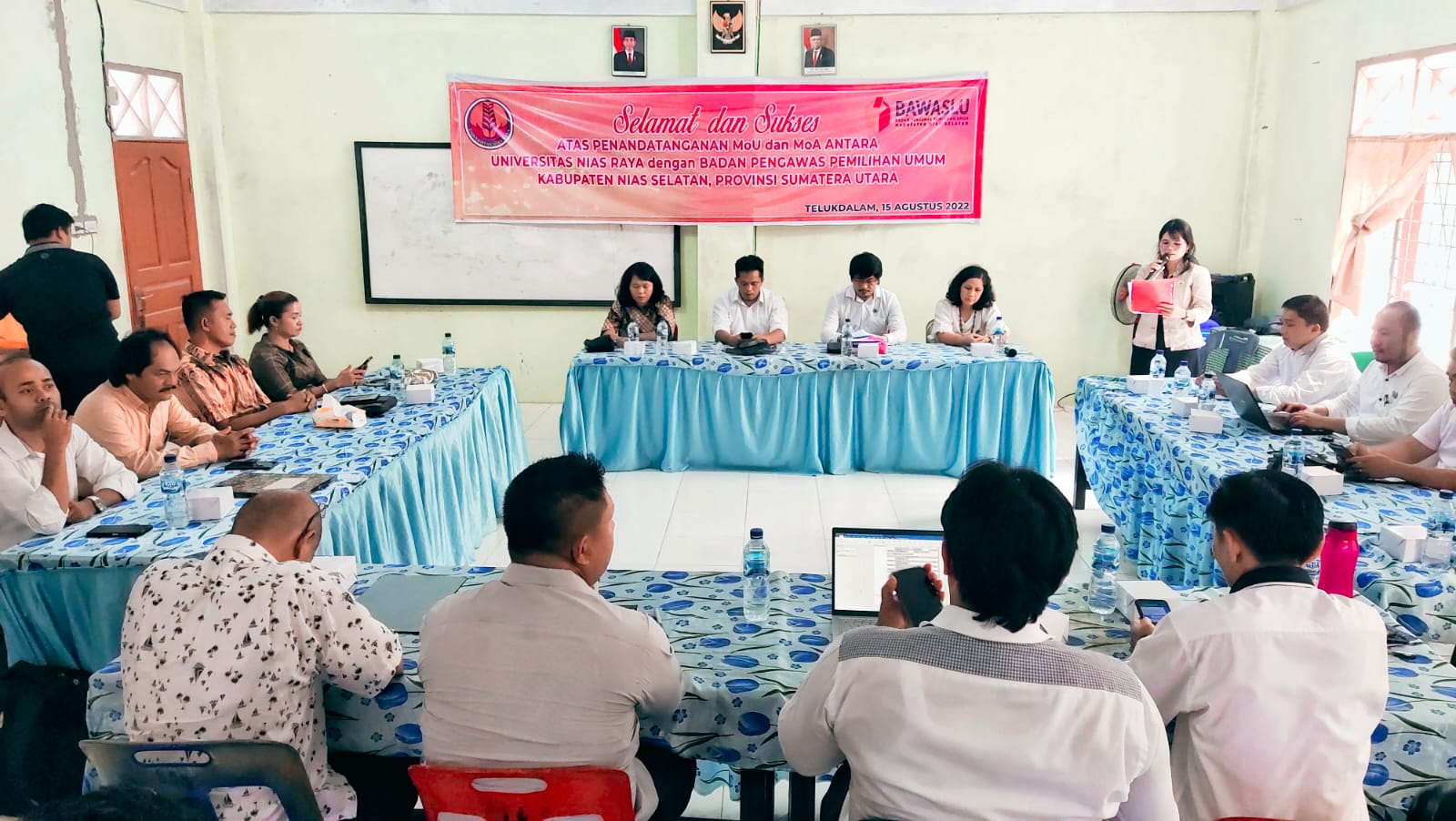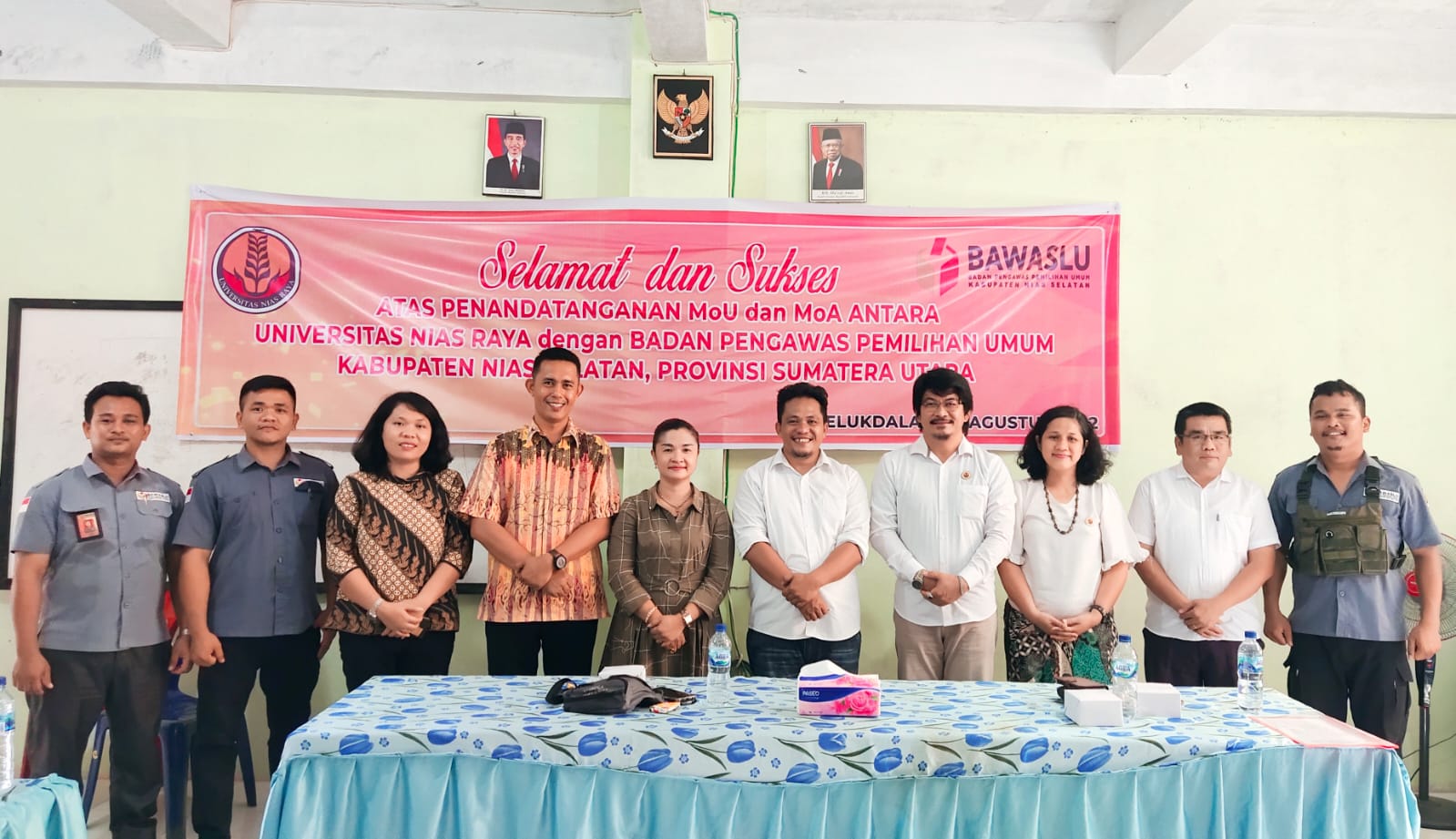 Turut hadir pada Penandatanganan MoU dan MoA Anggota Bawaslu Nisel Kordiv HPPS Alismawati Hulu, Plt. Kepala Sekretariat Bawaslu Nisel Suryanti Lubis dan Staf serta dari pihak kampus Wakil Rektor I Restu Damai Laia, M.Pd., Wakil Rektor II Samalua Waoma, S.E.,M.M., Wakil Rektor III Dr. Rebecca E. Laiya, MRE., Dekan FKIP Agustin Sukses Dakhi, M.Pd., Dekan FEB Alwinda Manao, S.E.,M.M., Dekan FH Laka Dodo Laia, S.H.,M.H., Dekan FST Progresif Buulolo, S.Kom.,M.M., Wakil Dekan FKIP Mohamad Yunus Laia, S.S.,S.H.,M.S., Wakil Dekan FEB Paskalis Dakhi, S.E.,M.M.,MAP., Wakil Dekan FH Dalinama Telaumbanua, S.H.,M.H., Direktur LPMI Yan Piter B. Ziraluo, S.Pd.,M.M.,M.Pd., Kaprodi Sistem Informasi Tobias Duha,M.Kom, Kaprodi Ilmu Komputer Ferdinand T. Fau, S.Pd.,M.Si., Bapak/Ibu Dosen dan mahasiswa HMP.