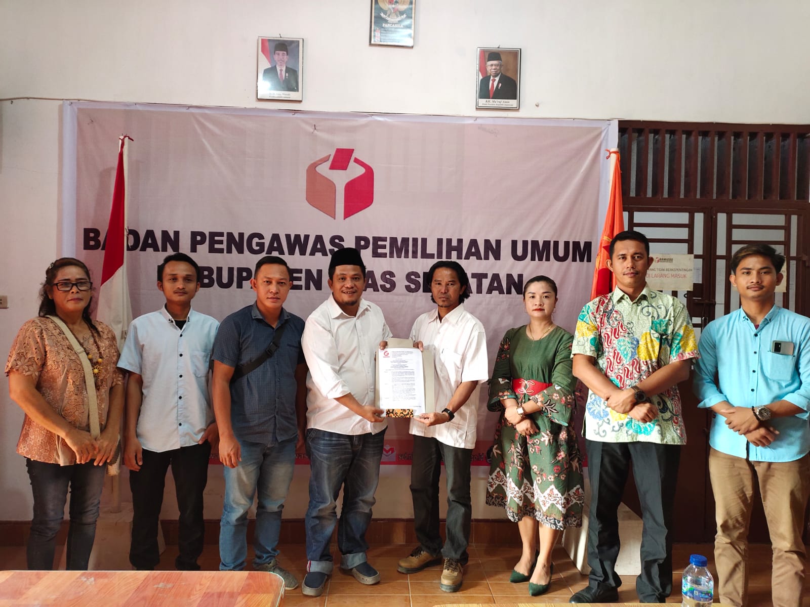 Foto: Ketua dan Anggota, Ibu Plt. Kepala Sekretariat serta Staf Bawaslu Nias Selatan bersama Ketua, Sekretaris, Bendahara dan beberapa pengurus Partai Swara Rakyat Indonesia (Parsindo).