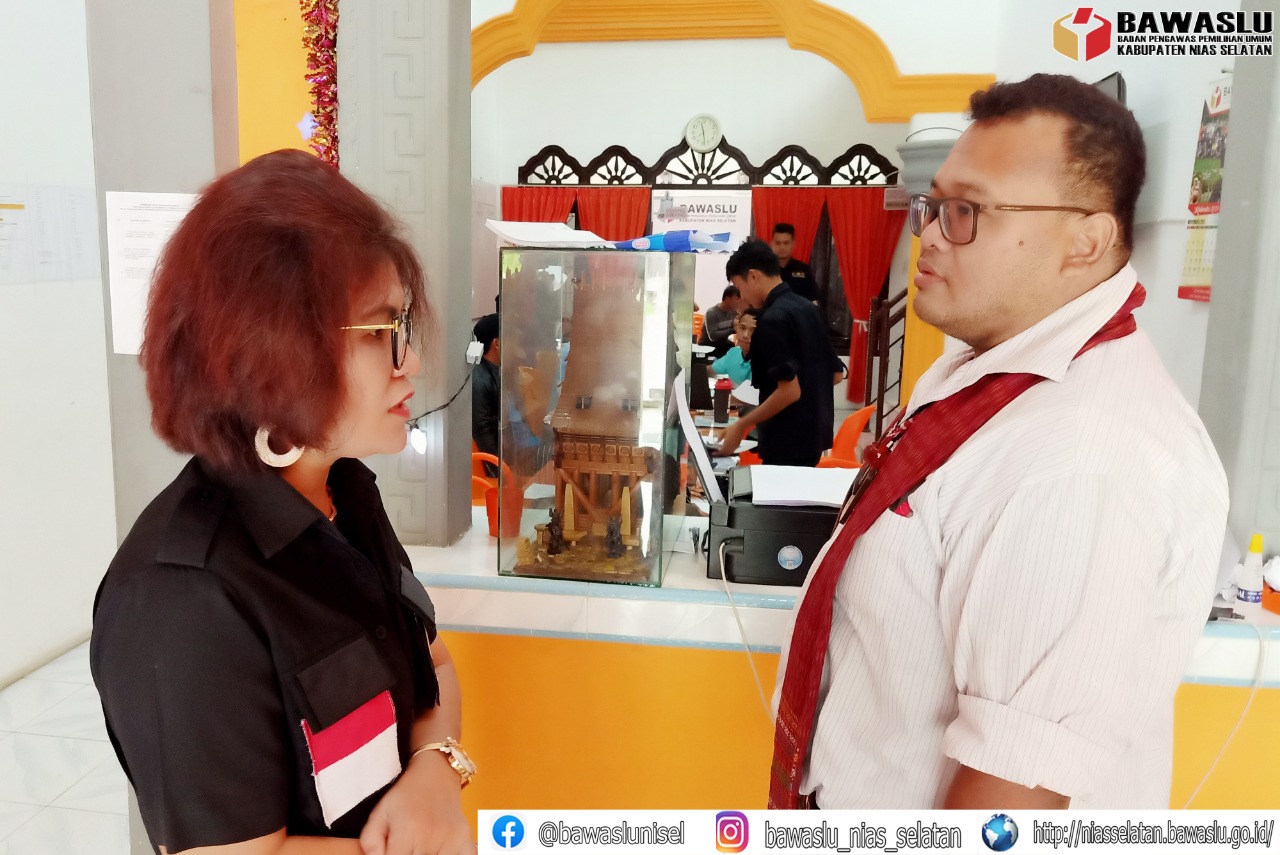 Sebelumnya, Tim Monitoring Kehumasan yang dipimpin oleh Fery Afriansyah Pohan tersebut telah melakukan monitoring di Kabupaten Nias Barat dan Nias Utara. Kemudian pada hari Selasa tanggal 02 Desember 2019, Tim Monitoring Kehumasan tiba di kantor Bawaslu Nias Selatan yang disambut langsung oleh Ketua Bawaslu Nias Selatan Alismawati Hulu dan Koordinator Sekretariat Murniati Dakhi.
