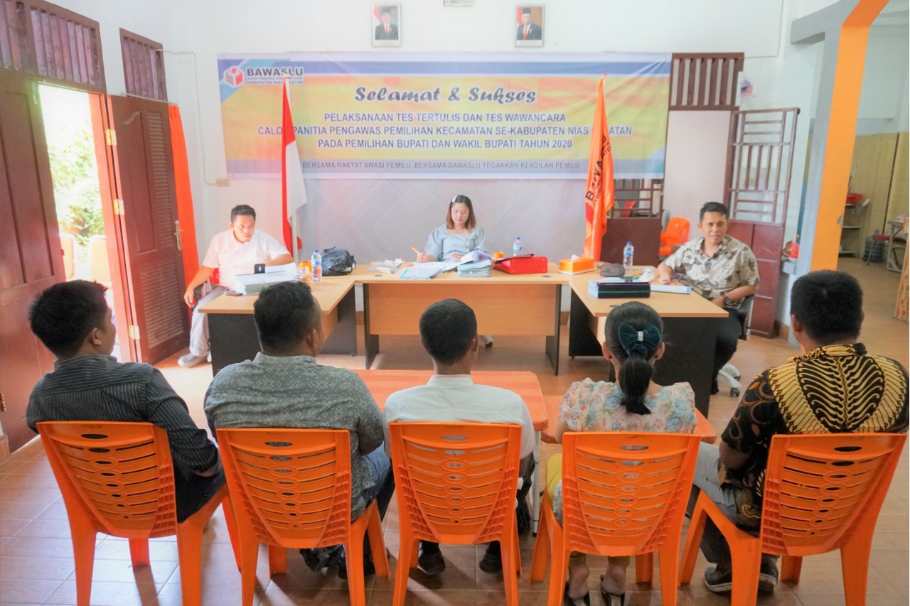 Tes wawancara yang dilakukan oleh Pimpinan Bawaslu Nias Selatan Ibu Alismawati Hulu, Bapak Pilipus Sarumaha dan Bapak Harapan Bawaulu terlaksana dengan baik. 85 peserta yang mengikuti tes tersebut dicecar dengan berbagai pertanyaan yang berhubungan dengan intregritasnya apabila menjadi seorang penyelenggara pemilu.