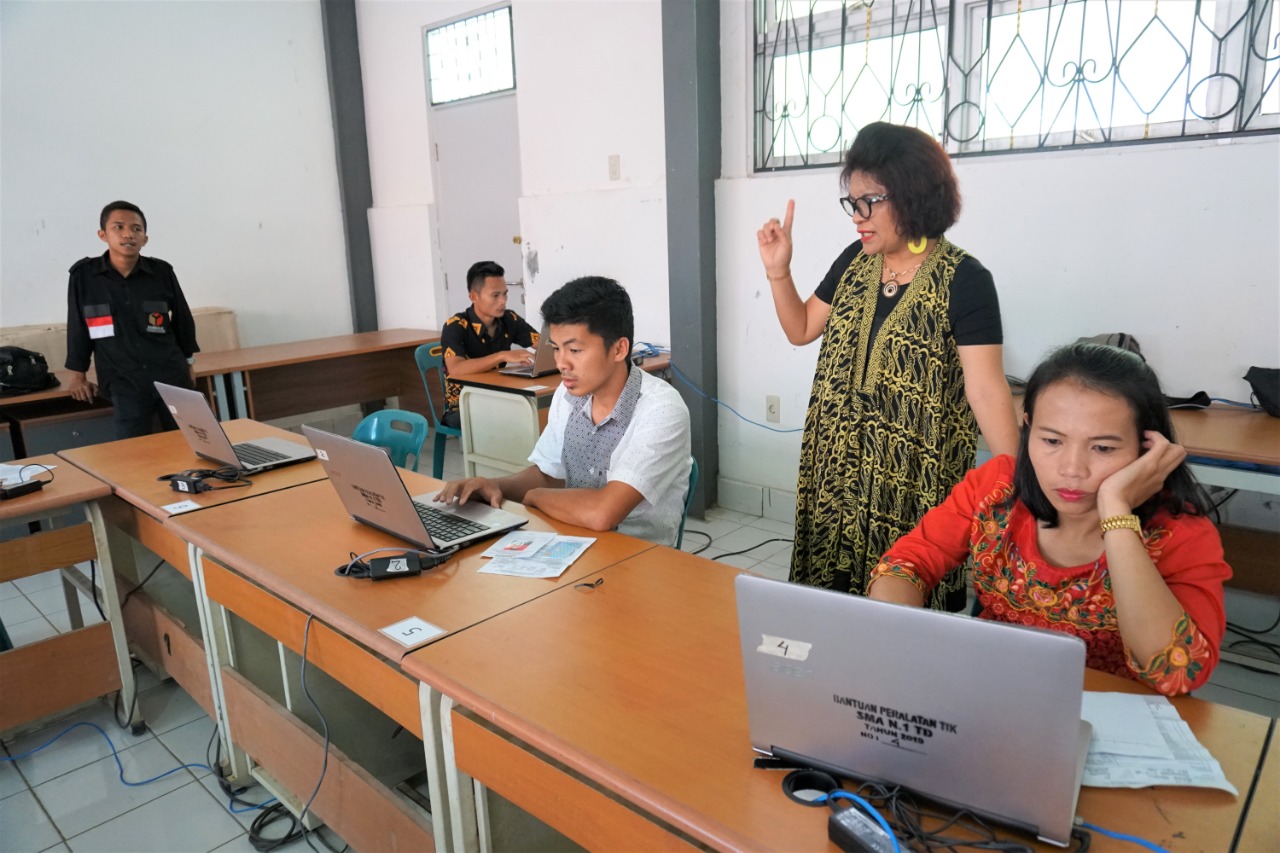 Niasselatan, Bawaslu - ujian berbasis komputer dalam rangka seleksi Panwas Kecamatan telah berlangsung selama 4 hari sejak hari jum'at 13 Desember 2019. Sehari sebelum ujian berakhir, Ibu Murniati Dakhi tetap melakukan monitoring di SMA dan SMK Negeri 1 Telukdalam.