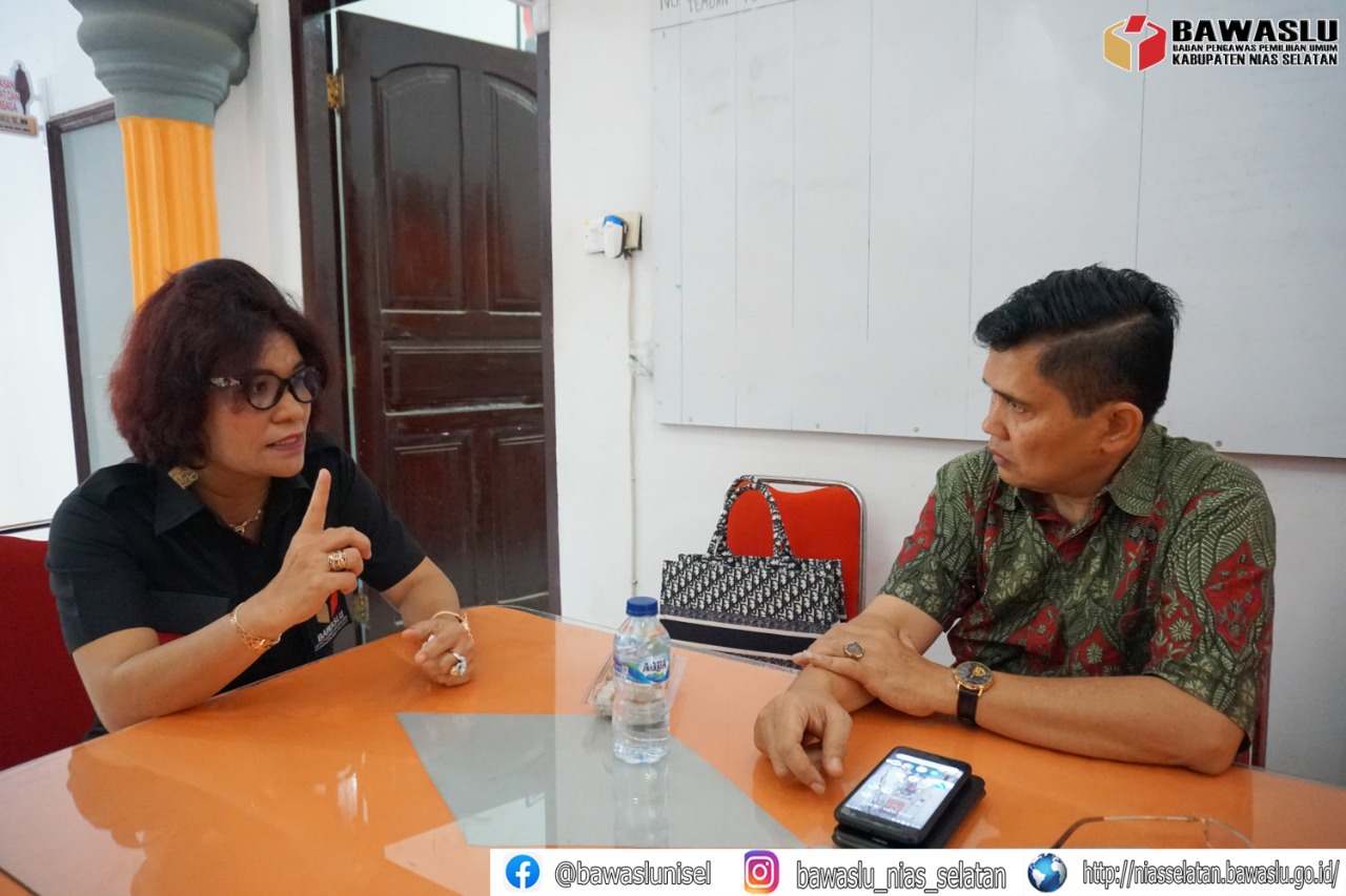 Anggota Bawaslu Sumatera Utara Bapak Suhadi Situmorang bersama Sekretariat Bawaslu Nias Selatan Ibu