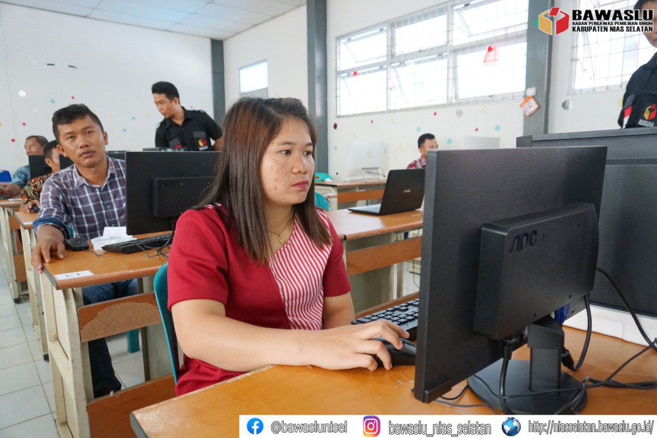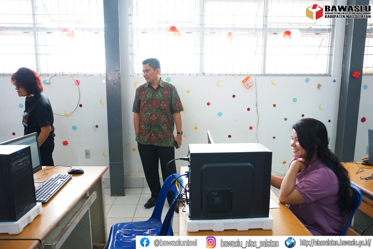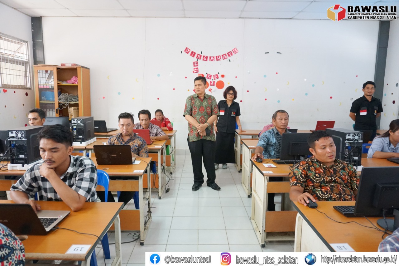 Niasselatan, Bawaslu - Anggota Bawaslu Sumatera Utara, Bapak Suhadi Sukendar Situmorang beserta staf melaksanakan monitoring pada tahap ujian berbasis komputer dan tes wawancara yang diselenggarakan oleh Bawaslu Kabupaten Nias Selatan di SMA dan SMK Negeri 1 Telukdalam serta di Kantor Bawaslu Nias Selatan. Ujian Basis Komputer dan tes wawancara tersebut sebagai rangkaian proses perekrutan Panwas Kecamatan yang memiliki integritas tinggi di Kabupaten Nias Selatan.